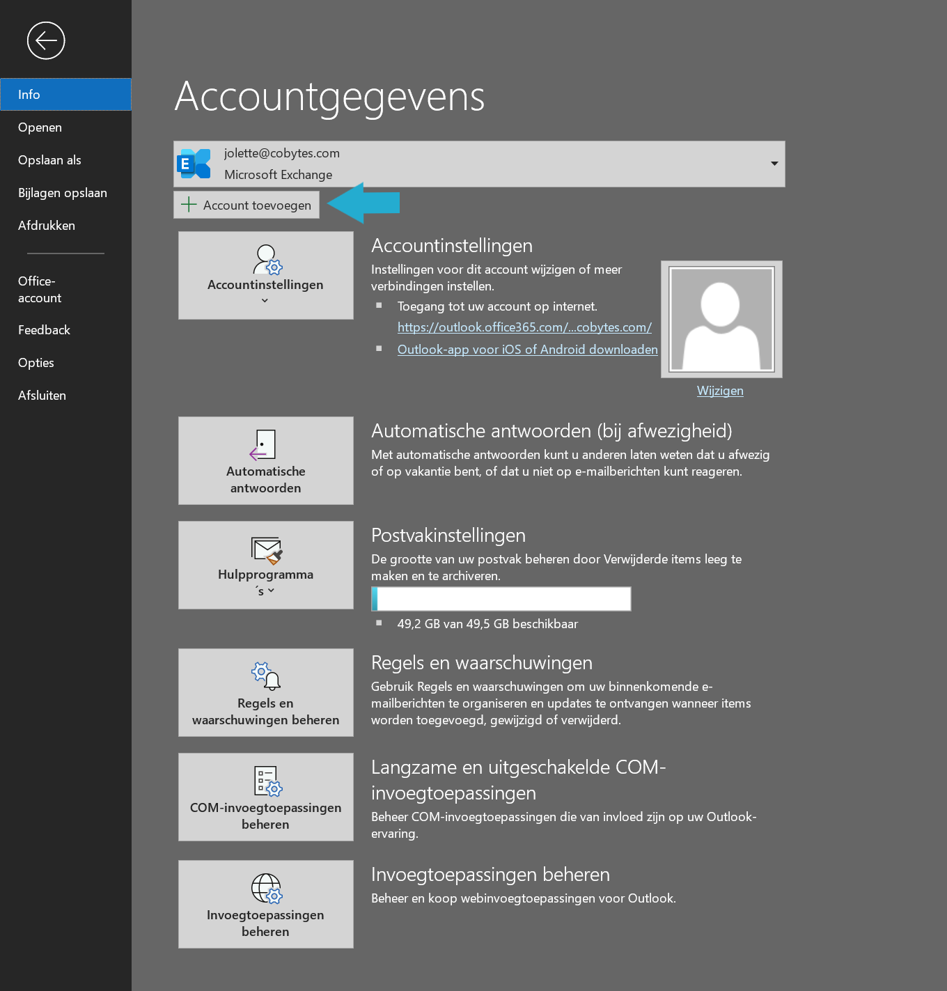 Klik op 'Account toevoegen' en vul je e-mailadres in.